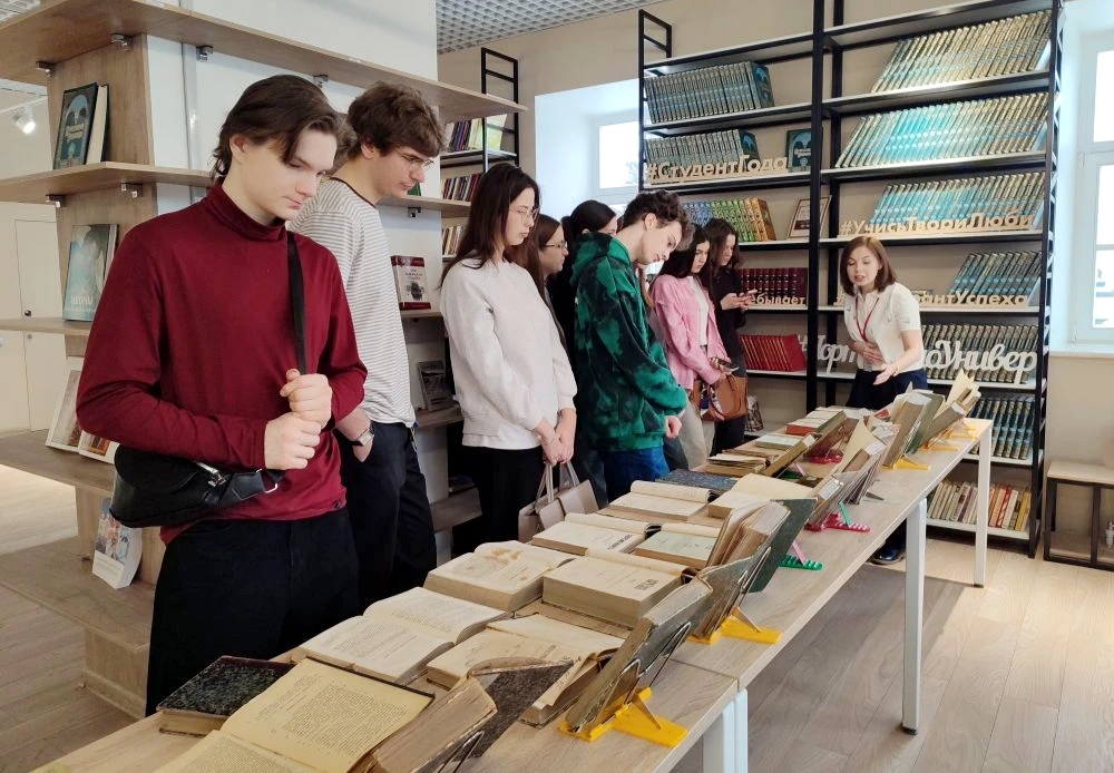 На развернутой выставке-просмотре, подготовленной отделом редких книг, будущие журналисты увидели периодические издания XVIII – начала XX вв. из фонда научной библиотеки. Были продемонстрированы уникальные экземпляры первых российских газет и журналов: «Санкт-Петербургские ведомости», издаваемые c 1703 г. по инициативе императора Петра I, «Московские ведомости», созданные указом императрицы Елизаветы Петровны в 1756 г., первый частный журнал «Трудолюбивая пчела», выходивший под руководством А. Сумарокова в 1759 г., один из первых научно-популярных русских журналов «Ежемесячные сочинения, к пользе и увеселению служащих».