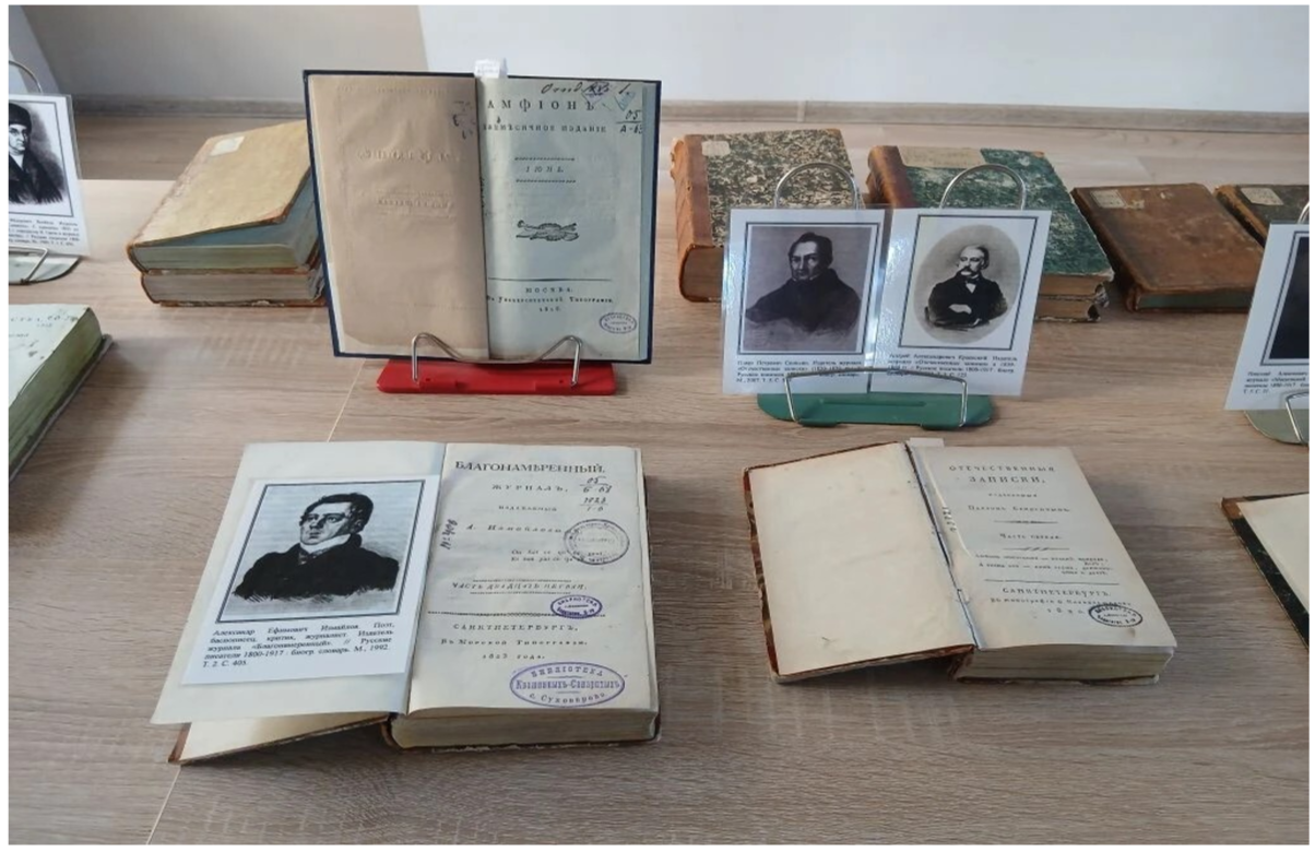 Занятия для студентов филологического факультета направления «Филология», посвященные русским литературным журналам и уже ставшие традиционными, прошли в Информационно-библиотечном центре 8 апреля 2026 г., провела их главный библиотекарь отдела редких книг кандидат филологических наук Т. А. Ильина. По согласованию с преподавателем кандидатом филологических наук О. С. Карандашовой был сделан обзор журналов на русском языке первой половины XIX в.